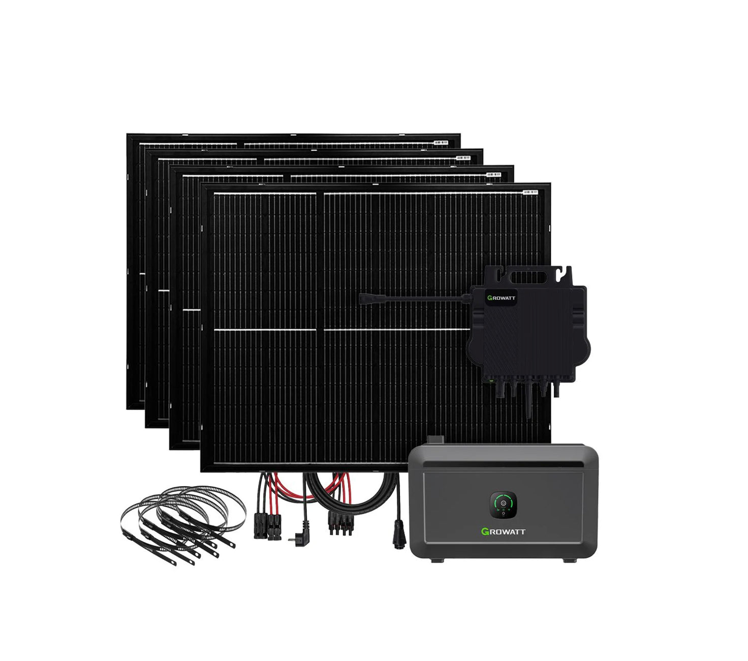 Balkonkraftwerk Komplettsystem 800W mit Speicher – 4× 200W Module + Growatt Wechselrichter + Montageset für Balkongeländer
