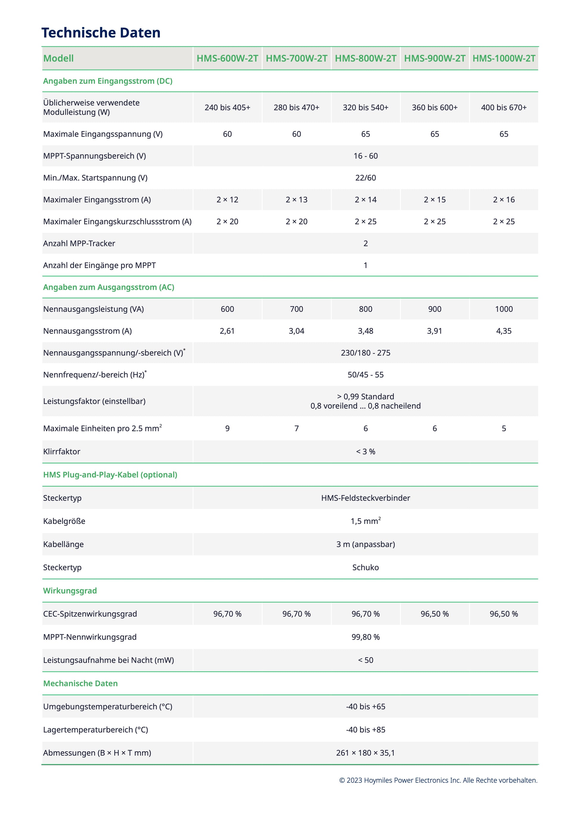 - 1 × Hoymiles HMS-800W-2T Mikro-Wechselrichter