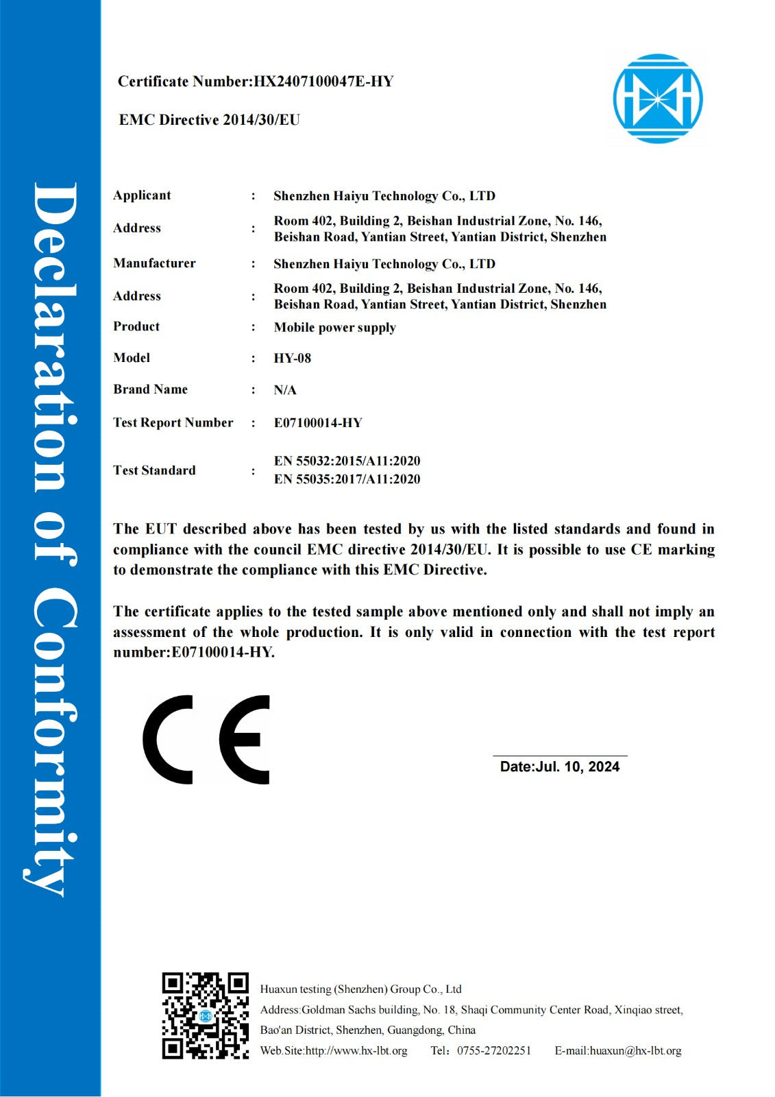 CE, CB, TUV, RoHS, CTIA, PSE, KC, GOST-R, SASO